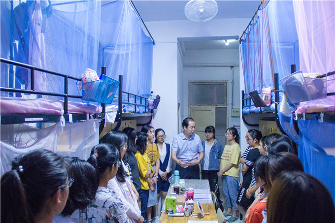 本网讯(565net必赢客户端 孙夏路遥)中秋情系新生,师生共话佳节。适逢中秋佳节来临之际,为加强新生寝室管理,及时了解新生思想状况,帮助同学们尽快进入大学状态。2018年9月22日晚,565net必赢客户端党委副书记乔静带领各专业新生辅导员深入寝室,开展新学期暨中秋佳节走访慰问工作。