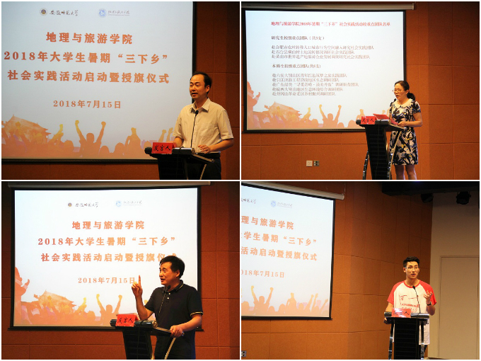 启动仪式在庄严的国歌声中拉开序幕。乔静首先通报了学院2018年暑期“三下乡”社会实践各项工作的开展情况。方凤满宣读了学院2018年大学生暑期“三下乡”社会实践活动校、院级重点团队名单。