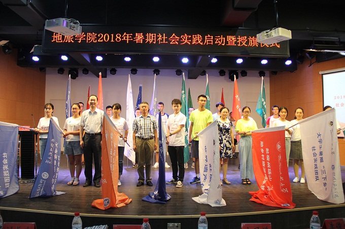 授旗仪式上,校团委副书记刘长生为学院校级重点团队授旗,院领导携高艳杰老师为学院院级重点团队授旗。