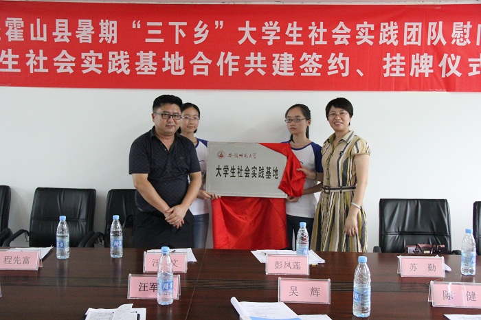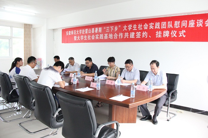 本网讯(565net必赢客户端 李雯、陈健)7月24日下午,副校长彭凤莲在565net必赢客户端院长苏勤、院党委副书记乔静及565net必赢客户端教授、博士生导师程先富的陪同下,来到皖西大别山深处的霍山县水土保持试验站,亲切慰问565net必赢客户端赴皖西大别山地区生态环境综合调研团队全体队员。霍山县副县长纪昌国,水务局局长王才品,水务局党组成员、县农建办主任汪文,上土士镇镇长何林,霍山县水土保持试验站站长汪军红等同志热情接待彭凤莲一行,并举行安徽师范大学赴霍山县暑期“三下乡”大学生社会实践团队慰问座谈会暨大学生社会实践基地合作共建签约、挂牌仪式。活动由霍山县水务局党组成员、县农建办主任汪文主持。