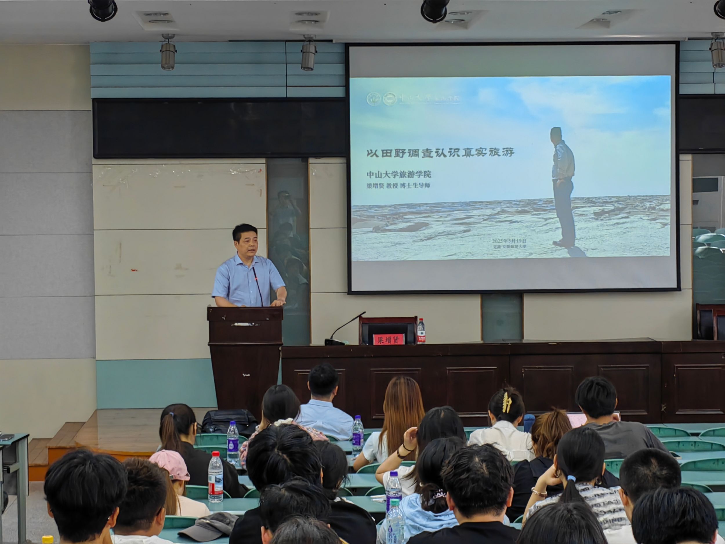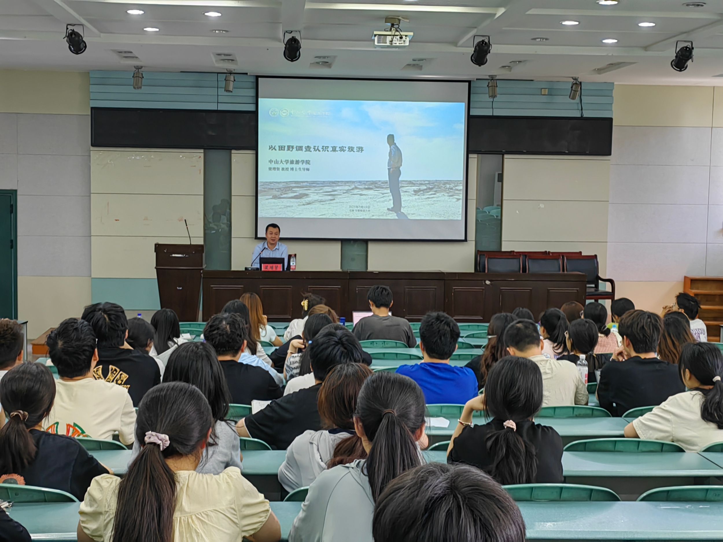 5月19日,旅游管理专业在实验楼101报告厅举办“学•思•享”大讲堂第十二讲。中山大学旅游学院教授,博士生导师梁增贤教授作《以田野调查认识真实旅游》专题讲座。2022级、2024级旅游管理专业学生参加,会议由旅游管理专业负责人尹寿兵教授主持。