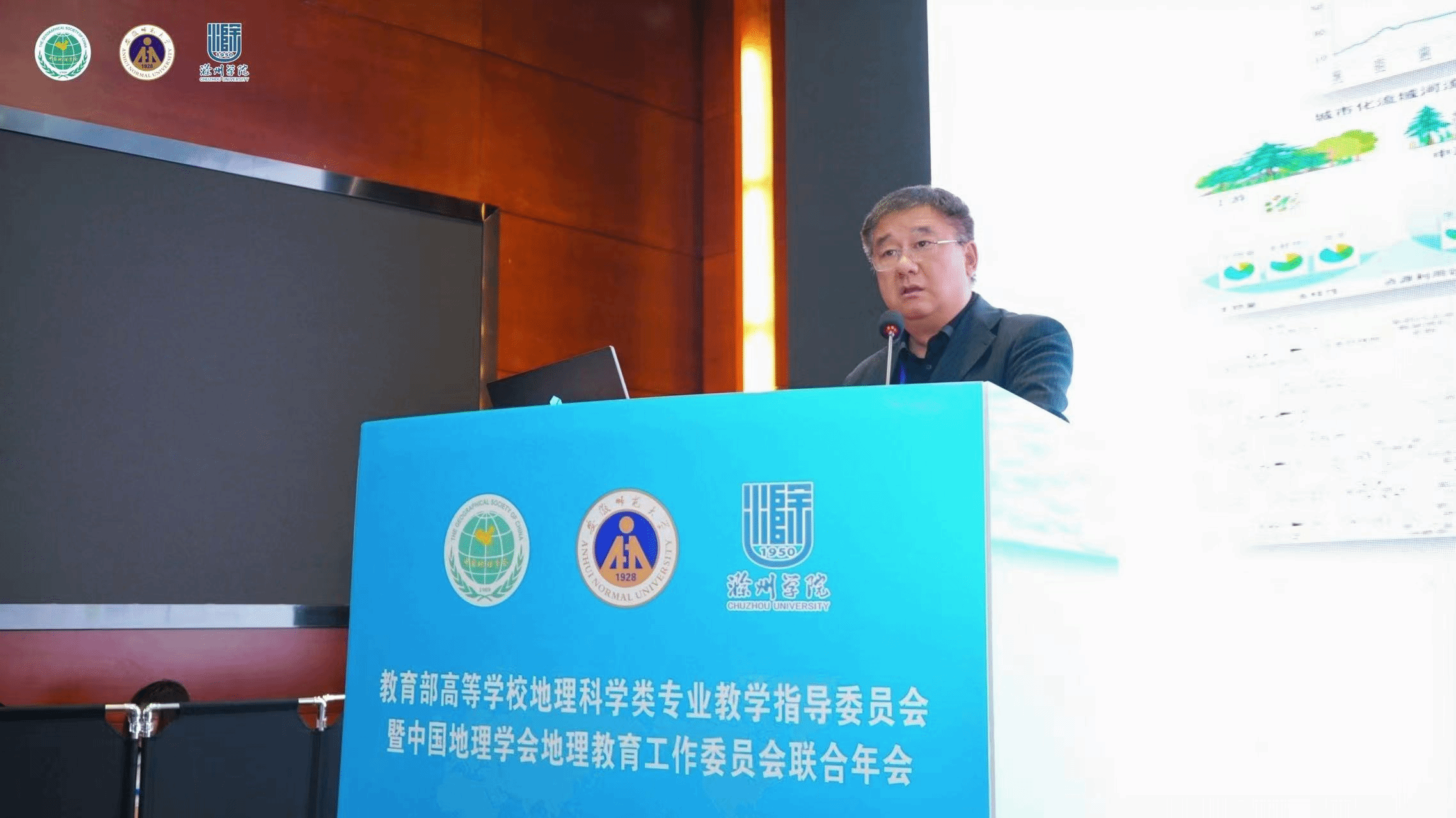 中国地理学会执行秘书长王岱研究员在致辞中强调,地理科学类专业教学指导委员会是我国高校本科地理教育教学工作的权威专家组织,中国地理学会高度重视与地理科学类专业教学指导委员会的合作,注重优势互补、合作共赢,并向本次会议的承办方安徽师范大学、滁州学院和安徽地理学会表示感谢。