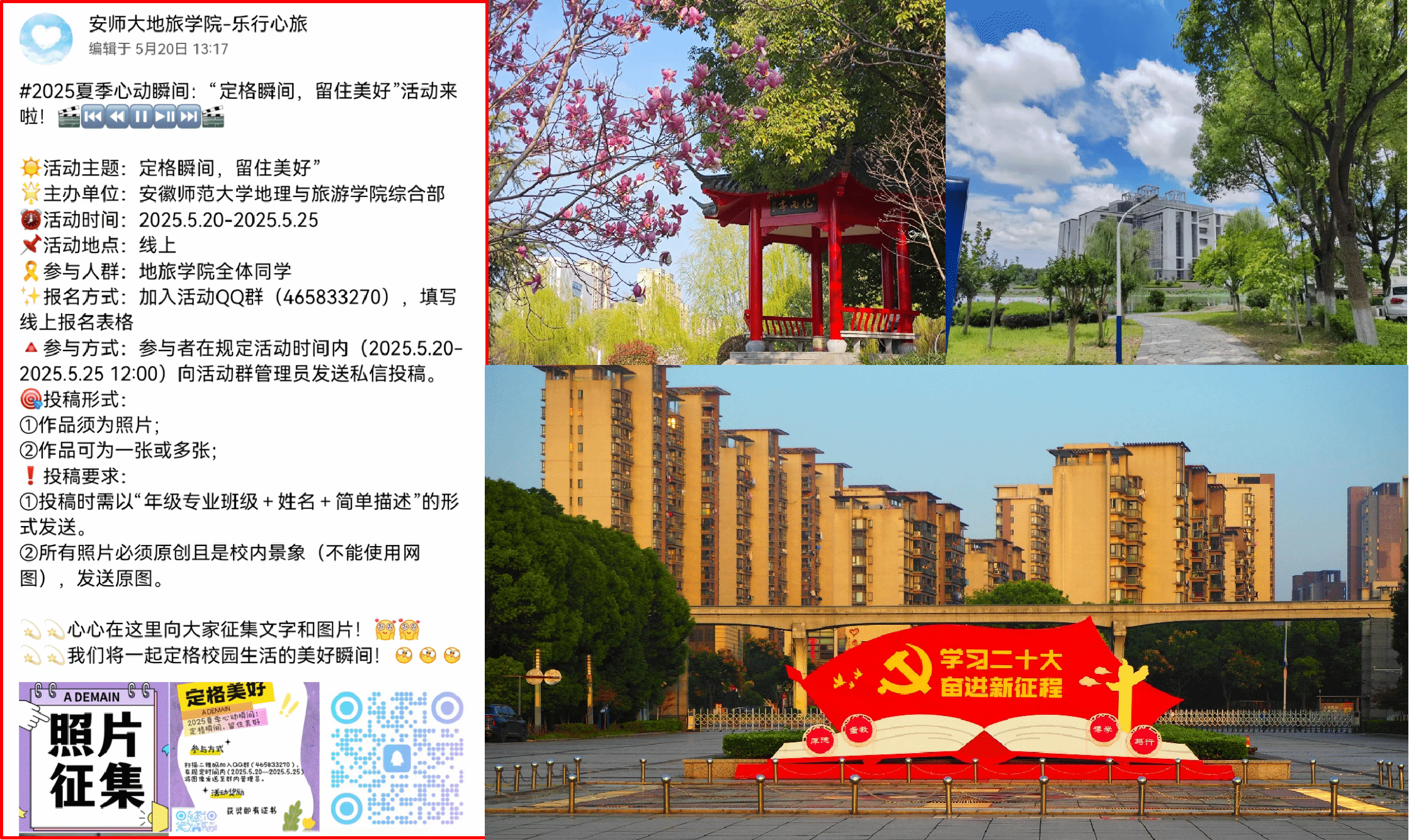 定格美好,拓展心理健康教育载体。为培养同学们学会发现美、善于欣赏美、主动创造美,引领同学们热爱美好、热爱生活,通过定格生活中的美好瞬间,唤起对生活的热爱与感恩,传递积极向上的生活态度和对美好的追求。565net必赢客户端“乐行心旅”心理发展辅导站面向全院学生举办了以“2025夏季心动瞬间:定格瞬间,留住美好”为主题的摄影比赛活动,极大调动了同学们关注身边美好事物的积极性,让同学们在繁忙的课业之外,感受随处可见的小美好,养成积极健康的心理状态和生活态度,活动得到了同学们的踊跃参加和充分肯定。