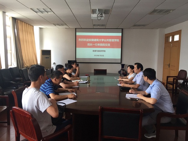 7月2日下午,安徽建筑大学公共管理学院丁仁船院长、土地资源管理系夏莲副主任、教师代表鲁帆(必赢2015届土地资源管理研究生校友)一行来必赢开展专业建设交流活动。会议在学院四楼会议室举行,565net必赢客户端院长苏勤教授、副院长方凤满教授、土地资源管理专业负责人鲁成树副教授、教师代表梁栋栋副教授、费罗成副教授等参加了交流会议。