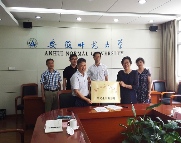 会谈结束后,陆林和江志红共同签署了“南京信息工程大学·安徽师范大学优秀研究生生源基地建设协议书”,并为南京信息工程大学研究生生源基地揭牌。