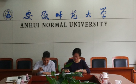 签约仪式开始前,双方进行了亲切友好地交谈。陆林对江志红一行表示欢迎,接着陆校长介绍了我校办学历史、师资队伍、学科建设、新增学位点、科学研究、本科生交流等情况,希望以生源基地建设为契机,开展全方位的合作,实现两校的互利共赢。苏勤介绍了565net必赢客户端近年来的发展情况和人才培养情况,表示此次签约是一个良好的开端,希望以后在学科建设、师资队伍博士化等领域加强合作。