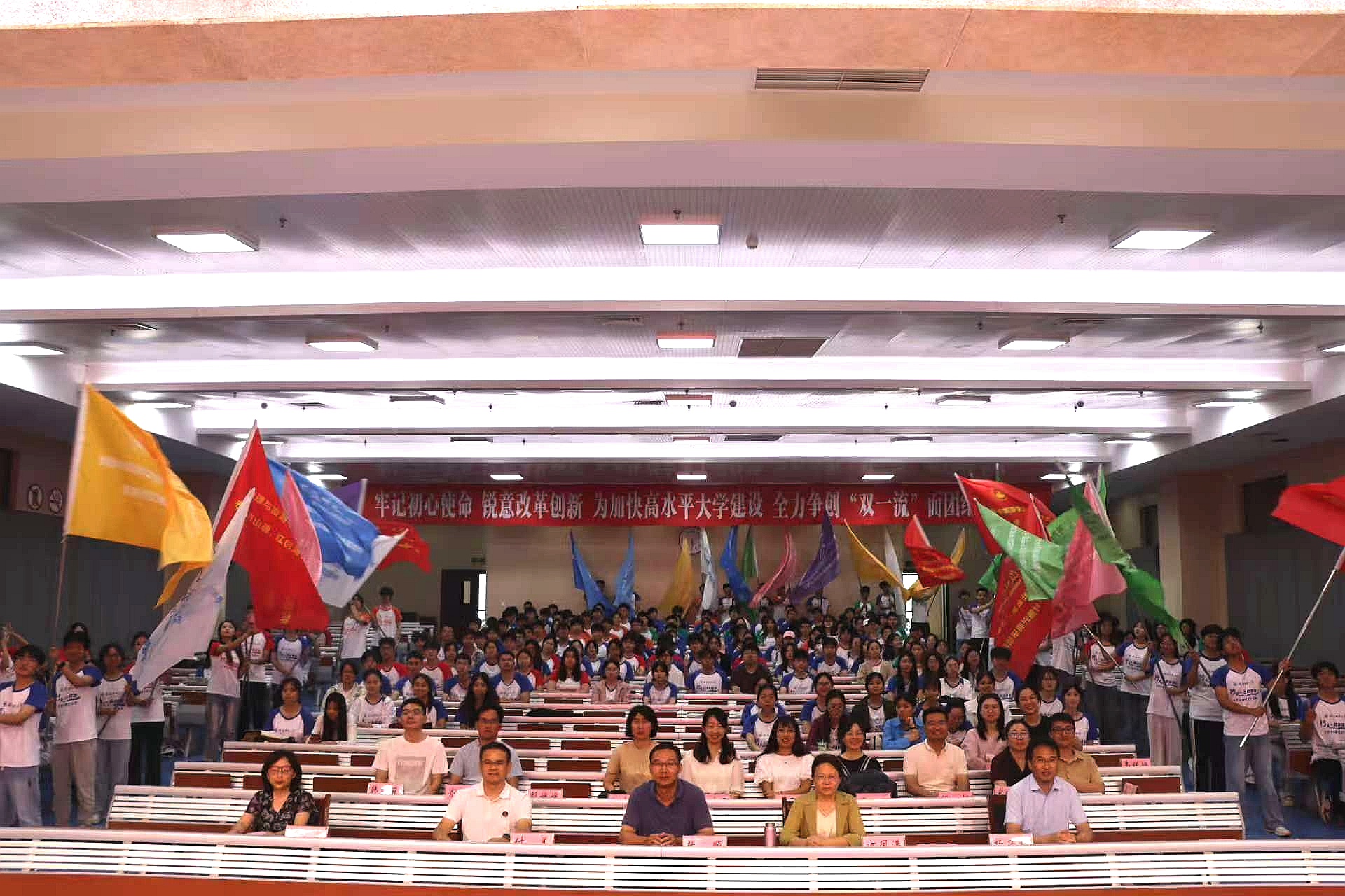 方凤满为暑期社会实践指导教师代表颁发聘书。张顺在动员讲话中指出,同学们要胸怀家国情怀,坚持知行合一,深入基层一线;要严守纪律,团结协作,展现"厚德重教、博学笃行"的学子风采;要珍惜实践机会,在服务社会中成长成才。最后,与会领导为各实践团队授旗,全体人员合影留念。