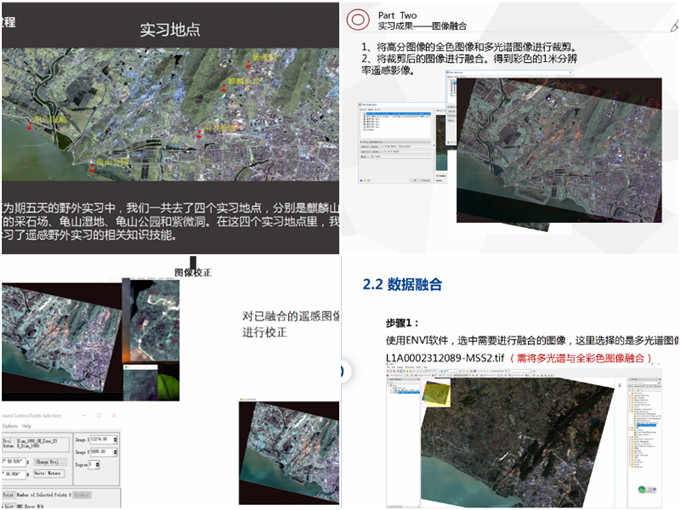 5月21日—26日在为期六天的巢湖实习中,全体同学在实习组老师的带领下,翻山越岭,并肩同行。初到巢湖市时,细雨蒙蒙,全体学生带着对大自然的好奇与知识的敬畏踏上了本次巢湖实习的征途。实习期间,老师们为同学们耐心的讲解各种地质地貌、集水区和坡度坡向等地学知识,亲自带大家探索不同岩层产状,寻找不同岩层化石。71名同学。7个小组,不畏艰辛,分工明确,为了构建地物波谱库,测反射率,他们头戴遮阳草帽,身穿雨披鞋套,肩负测量仪器,每日步行上十公里,只为顺利完成任务,得出完美的成果。6天,同学们穿梭过三千六百平样方的丛林、划过了紫薇洞的地下暗河、征服了险峻的麒麟山脉。