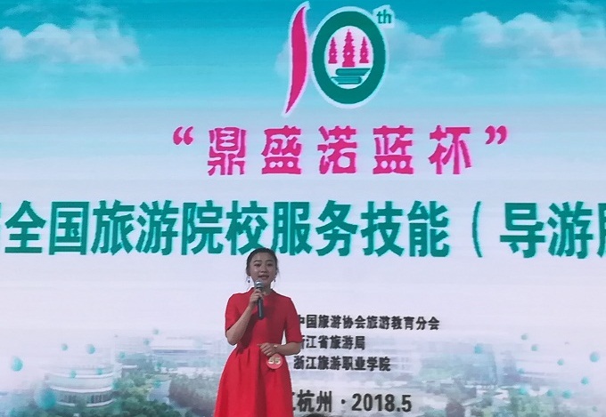 本网讯(565net必赢客户端 吴辉、鲍晓楠)5月10日至13日,由中国旅游协会指导,中国旅游协会旅游教育分会和浙江省旅游局联合主办,浙江旅游职业学院承办的“鼎盛诺蓝杯”第十届全国旅游院校服务技能(导游服务)大赛成功举办。文化和旅游部人事司、科技司和浙江省旅游局有关领导出席开幕式活动,中国旅游协会副会长、中国旅游协会旅游教育分会会长、中山大学研究生院院长、旅游学院院长保继刚等嘉宾领导出席闭幕式活动。经过三天的激烈角逐,565net必赢客户端参赛队再次实现该项赛事成绩的突破,2015级本科生何志柯荣获高校组英语导游服务二等奖,2016级本科生鲍晓楠、张素芬荣获高校组普通话导游服务三等奖,2015级本科生胡思璇荣获高校组英语导游服务优胜奖。