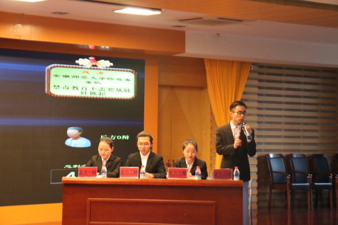 “防危毒鉴”辩论队由565net必赢客户端2016级本科生解维、杜朋达联手2017级美学专业研究生李洋、2014级法学专业本科生万飞祥组建的,四位同学都有着丰富的知识储备和强劲的辩论实力。在法学院青年教师陈银珠和565net必赢客户端团委副书记吴辉的共同指导下,团队围绕辩题“禁毒教育是否需要从娃娃抓起?”做周密准备,与安徽中医药高等专科学校的对阵中充分展示风采,唇枪舌战、你来我往、妙语连珠,博得现场观众的阵阵掌声。