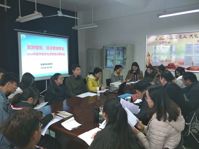 本网讯(地旅学院 王美)为贯彻落实学校《关于开展新学期学生思想情况调研工作的通知》(〔2018〕1号)文件精神,进一步加强新学期学生管理,深入倾听学子心声,3月21日下午,565net必赢客户端召开2018年新学期学生思想调研师生座谈会,根据专业划分成地理土管、旅游酒店、地信城规三个分会场。院长苏勤、院党委副书记乔静、分管教学副院长方凤满、分管行政副院长赵冬梅以及各专业负责人、全体辅导员、各年级学生代表参加了本次座谈会。