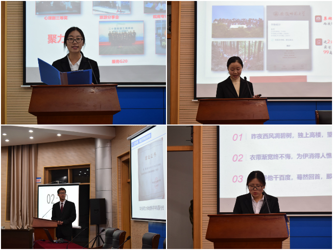 其中,来自2014级旅游管理的徐倩,通过阐述大四学生逐梦路,表达了自己不忘初心,坚持梦想的过程,给低年级的同学上了生动的一课。来自2015级地理科学专业的朱珠,用王国维在《人间词话》中说到的“三种境界”讲述了自己在大学期间政治追求、社会工作以及科研实践等方面的诸多收获。当她展示自己参加为期24天的“中国第二次青藏高原综合科学考察研究暨‘河湖源科考’”行动的路线时,更是赢得了台下评委和同学的阵阵掌声。2015级城乡规划的魏宁,则展现了她心在远方的远大目标,路在脚下的踏实勤恳,处处体现了当代大学生充分将理想与现实相结合的发展理念。来自2016级地理科学专业的解维,以辩者的身份讲述了她无畏且直前的精神和行动。以缜密的思维去看待志愿服务,学生工作,学习过程,她的讲述散着发辩者的魅力。