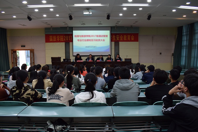 此次会议针对2017级酒店管理在4月23日至4月27日的行业感知见习进行动员。为达到了解当前我国酒店行业发展现状,进一步牢固专业思想,体验酒店不同岗位的操作技能,增强对酒店行业环境的适应性等见习目的,副院长王朝辉就相关情况发表动员讲话。他讲到,这次见习活动对酒店管理的同学意义重大,这是一次与平常不同的学习之旅,同学们要带着思考和问题,以专业的角度去发现探索,培养职业习惯、职业情操、职业素养,同时,这次活动对同学们培养团队精神和加强团队协作能力十分有利。副书记乔静为确保此次见习活动顺利进行,给同学们提出了相关要求。他说到,同学们要以管理者兼旅游者的视角去看待问题,对相关活动提前了解,做好功课;在过程中要注意礼仪仪态,留心细节,同时也要谨记安全和纪律要求,跟随队伍一起行动;每天活动都要做到观察好,思考好,记录好,总结好这四好,从这次见习活动中真正学到知识。