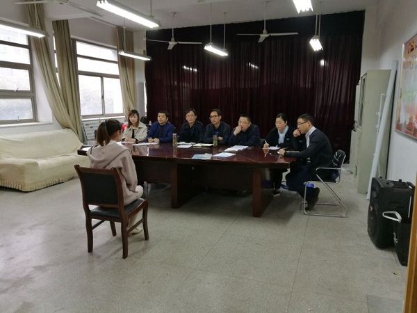 本网讯(国旅学院 李小文)3月13日至14日,由必赢主办的“职海扬帆”浙江省湖州市安吉县教育局师范生专场招聘会成功举办。安吉县教育局副局长王军民、编办副科长张凯文、教科研中心主任陈国学以及安高、昌高、孝高、职教中心四个单位的校长参加招聘会。整个招聘会分为两个阶段,第一个阶段是13日下午在圆形报告厅举办的宣讲会,第二阶段是14日上午在565net必赢客户端行政楼举办的面试与签约。
