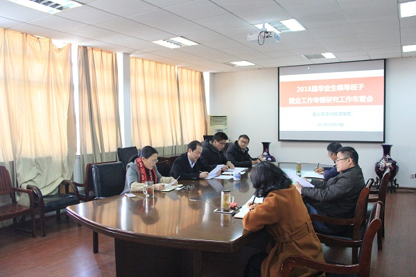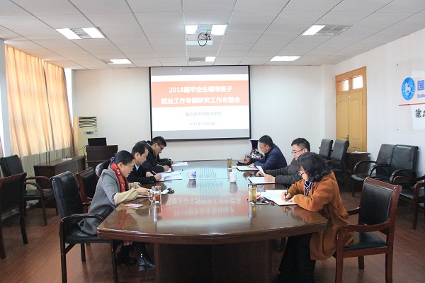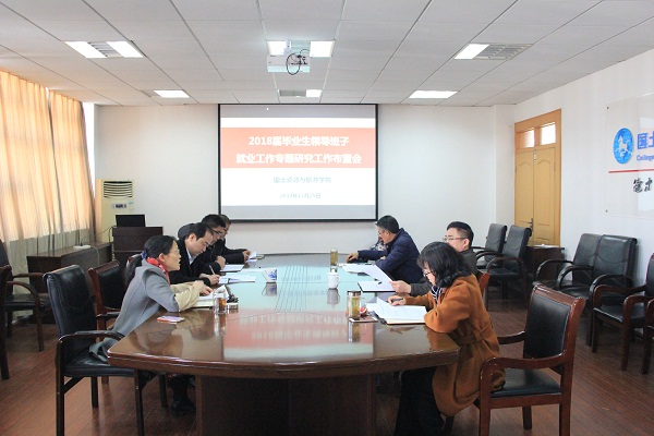 12月25日上午,国旅学院在院行政楼四楼会议室召开2018届毕业生领导班子就业工作专题研究工作布置会。院领导班子、毕业班辅导员参加本次会议。会议由党委副书记乔静主持。