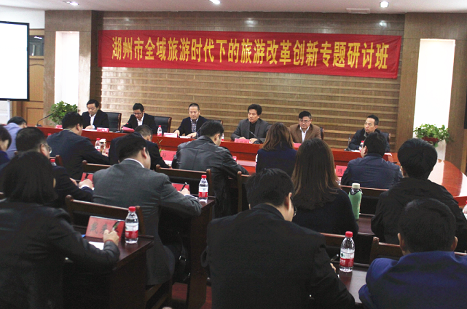 11月12日至11月16日,由湖州市委组织部、湖州市旅游委员会、安徽师范大学联合举办的“全域旅游时代下的旅游改革创新”专题研讨班在安徽师范大学成功举办。湖州市副市长卢跃东带队并做研讨动员,湖州市各县(区)政府分管负责人、太湖国际度假区负责人,各县区旅委(局)主要负责人,省级旅游度假区及重点旅游乡镇主要负责人等50余人参加专题研讨。