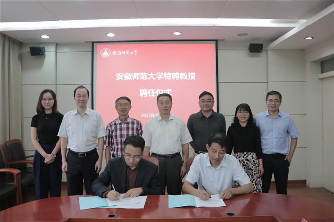 朱为民代表学校人事处和李正强教授签署了聘任合同,程度为李正强教授颁发了聘书。