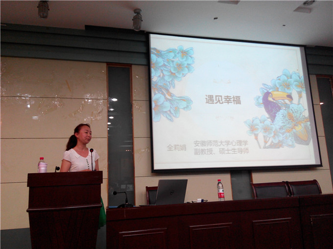 本网讯(国旅学院发展辅导站)美丽心灵,阳光五月。5月22晚上,国旅学院邀请安徽师范大学教育科学学院全莉娟副教授在实验楼101教室为大一学生作“遇见幸福”心理讲座,讲座由2016级辅导员赵将主持。