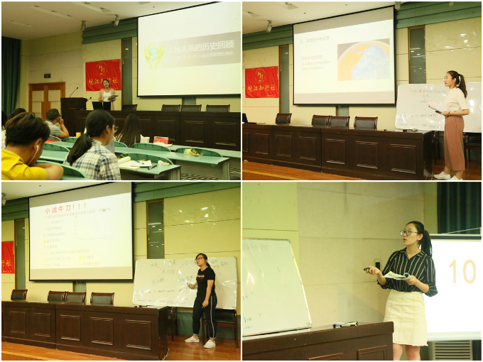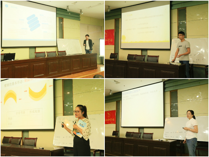 来自14级地理科学专业的郑晓丽同学,由牛奶开始本次比赛的主题,语言幽默生动,具有亲和力,向大家详细的介绍了牛奶的生产、加工及运输过程;作为唯一一位2015级选手,吴星麒也毫不怯场,他用一首诗引入正题,详细的介绍了湿地的形成原因和具体形态;来自14级地理科学的詹佳璐,用李白的诗开场,向大家提出问题:宣酒为什么能发展的这么好?再分层次解释原因,并布置了小组课后作业给同学们思考。整体布局严谨,思路清晰;14级地理科学专业和玄同学参赛的主题是《人地关系的历史回顾》,从天灾人祸开始,依次介绍了采集渔猎时代,农业文明时代和工业文明时代,进而提出环境问题;十二号选手吕默瑶从日本九级地震福岛核电站核泄漏事件展开话题,介绍了大规模海水运动的主要形式和洋流分布规律;十三号选手管丽丽从水位、流量、含沙量、含沙量四个角度介绍了河流水文特征,并提出了分析的方法,内容简洁明了。场上的每位选手都发挥出色、展现了教学技能和自我风采。