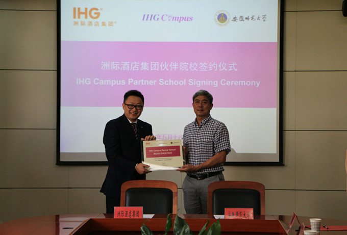 据悉,我校国旅学院长期以来高度重视应用型专业的联合培养及合作办学工作,与开元集团等国内外知名企业集团保持长期良好合作关系,坚持以“国际化、复合型、应用性”为特色,以“学校教育+行业培养”双向教育为抓手,积极开展“教学+实习+实践+就业”四基地建设,成果斐然。据了解,洲际酒店集团(IHG)成立于1777年,是目前全球最大及网络分布最广的专业酒店管理集团,在全球100多个国家和地区拥有 5,000 多家酒店和近 74.4 万间客房,拥有洲际、皇冠假日、假日、智选假日、英迪格、华邑酒店等多个国际知名酒店品牌和超过60年国际酒店管理经验,是世界上客房拥有量最大、跨国经营范围最广、在中国接管酒店最多的超级酒店集团,其业务涉及中国大陆25个省、区、市。值得一提的是,在2016杭州二十国集团工商峰会(B20)筹办期间,我校国旅学子在B20峰会主会场(杭州国际会议中心暨杭州洲际酒店)全力投入相关工作,充分展示了师大学子精湛的专业素养和良好的精神风貌,学校因此被授予二十国集团工商峰会(B20)服务保障优秀合作院校称号。