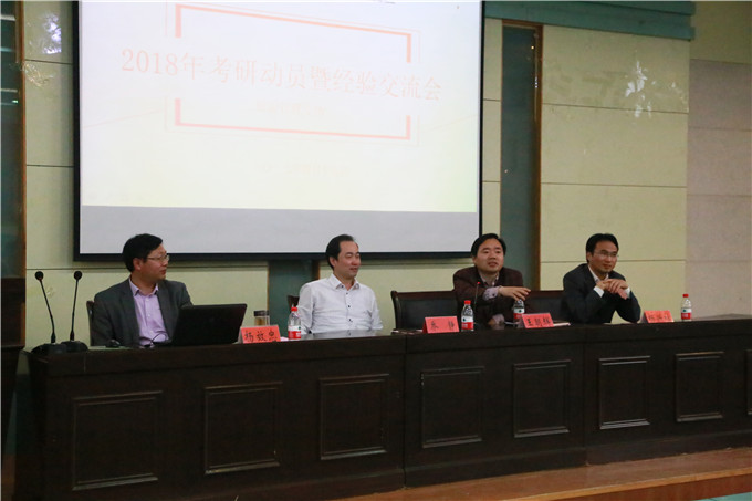 在地理科学与土地资源管理专场中,副院长方凤满、土地资源管理专业负责人鲁成树等建议各班级学子,在备考初期,同学们要结合自己的实际情况,选择一个适合自己的学校及专业,要学会融会变通;要以学长学姐们为标杆,学习他们肯吃苦,为理想努力拼搏的精神。最后对即将踏上考研之路的同学们给予期望和祝福。在地理信息科学和城乡规划专场中,地信专业负责人麻金继教授、城乡规划专业负责人曹卫东教授结合个人考研经历谈到:考研是青年大学生完善自我、实现人生“弯道超越”的重要机会,希望同学们能充满自信地踏上考研的征途,让自己的人生实现华丽地转变。在旅游管理专业分会场,王朝辉副院长、旅游管理专业负责人杨效忠、酒店管理专业负责人杨兴柱教授为在座同学分析了自身在考研方面的优势,鼓励大家积极准备考研。同时,他们也强调,考研不但可以锻炼思维与判断力,提升解决问题的能力,为将来的个人事业奠定基础,同时也是实现中国梦的人力资源支撑。