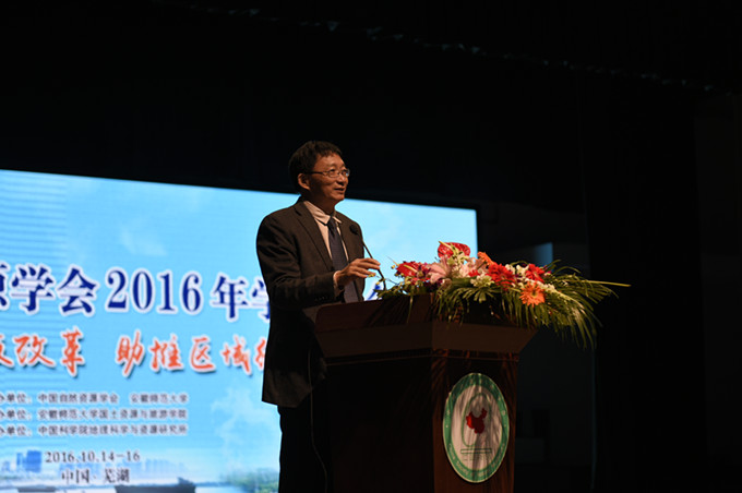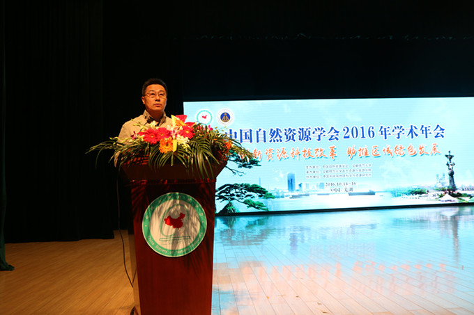 成升魁在开幕辞中介绍了中国自然资源学会的发展历史,并表示本次学术年会旨在通过广泛的学术交流,扩大与会者的学术视野,引起广泛的学术讨论与争鸣,为我国科技改革与创新提供新的思想和科学依据。他指出,此次年会是首次在省会以外的城市召开,本次年会承办方的选择具有特殊的学术服务地方的意义,年会分论坛的设置将围绕促进安徽融入长三角的可持续发展、发挥安徽的区位优势、人力和土地优势、促进创新驱动发展等专题,助推安徽创新型“三个强省”建设。随后,中国科学院地理科学与资源研究所所长葛全胜研究员代表学会支撑单位在致辞中充分肯定了学会在推动我国资源科学事业中的重要贡献,对学会取得的丰硕成果表示祝贺,并代表中国科学院地理所表示将继续支持学会的工作,共同推动资源科学事业取得更大进步。