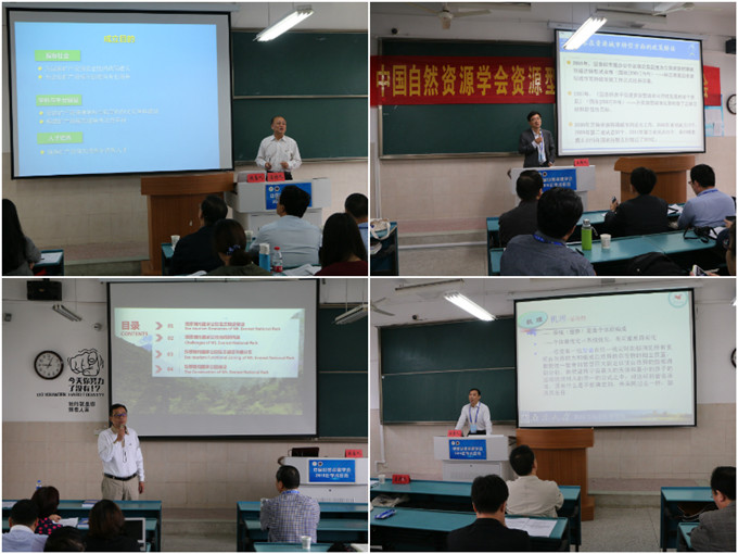 开幕式后,陆大道、夏军、陈发虎、冷疏影、段金廒、杨桂山、封志明、陆林和成升魁等专家学者分别作了9场大会主旨报告。陆大道院士在题为“中速增长:中国经济的可持续发展—中国经济增长的资源环境支撑系统分析”的报告中,对中国经济的可持续发展以及中国经济增长的资源环境支撑系统做了细致而又深入的分析;夏军院士在题为“中国水安全和水电工程开发面临的环境影响问题与对策”的报告中,从国家水安全角度出发,探讨与水污染、水灾害、水短缺、水生态紧密联系的流域、跨界、区域、以及国家水安全的科学基础、水安全保障水电能源开发面临的机遇和挑战;陈发虎院士在题为“新资源利用驱动史前人类永久定居青藏高原”的报告中首次论证了距今4000年前后欧亚大陆农业传播引发的农业技术革新与农业新资源的利用,并最终促成了史前人类在气候变冷大背景下大规模向青藏高原高海拔地区扩张并永久定居的观点;冷疏影研究员在题为“自然地理学与陆地表层研究”的报告中,通过国内外文献统计,详细阐述了自然地理学和陆地表层研究的总体趋势、重要主题、研究队伍和学科发展基础等;段金廒教授作了题为“中药资源循环利用与资源价值创新”的报告,详细阐述了中药资源生产和深加工产业现状及存在问题,并以实例介绍了中药资源包括非药用部位和药渣的循环利用与资源价值创新,及中药制药废弃物的无害化处理与资源化利用等问题;杨桂山研究员在题为“长江经济带绿色生态廊道建设策略”的报告中从多个角度阐述了长江绿色生态廊道的建设基础,并揭示了目前长江绿色生态廊道存在的问题及对策;封志明研究员在题为“自然资源资产负债表编制的理论与实践问题”的报告中介绍了自然资源资产负债表编制的缘起、研究背景、态势判断、理论借鉴和基本认识,并以实践探索了编制原则与技术途径、建立框架体系与表式结构等问题;陆林教授在题为“城市群乡土-生态空间:新的发展战略空间,新的人地关系”的报告中详细地陈述了城市群乡土-生态空间提出的背景、内涵以及乡土-生态空间的旅游利用,并提出了构建城市群新型人地关系的重要途径;成升魁研究员的“食物浪费与生态文明建设”报告则基于食物浪费严重的现状,通过构建食物浪费理论及实证研究,提出了研究食物浪费问题与测度的创新性思路与对策。