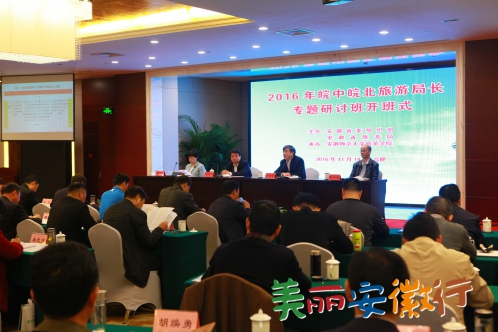 11月14日至18日,由省委组织部、省旅游局联合主办,安徽师范大学承办的“2016年皖中皖北旅游局长专题研讨班”在合肥辰茂和平大酒店成功举办。安徽师范大学副校长王绍武出席开幕式,并做重要讲话,省旅游局局长万以学、副局长王靖,省人才办副主任陈安源出席了开班仪式。来自皖中、皖北9市、县(市、区)近70名旅游局负责人参加了研讨班。