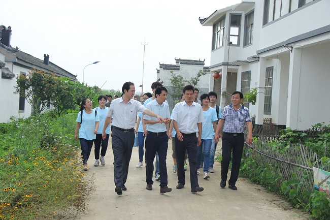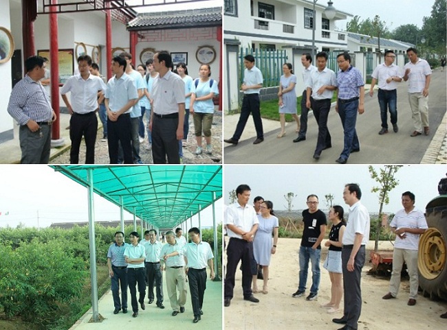当天下午,在连江镇、吴圩镇有关领导的陪同下,毕明福一行和实践团队先后前往连江镇岳庄生态旅游示范园、吴圩镇大学生村官创业基地和吴圩镇九梓村,调研考察当地文化保护、生态农业、大学生创业等新农村建设的优秀成果。