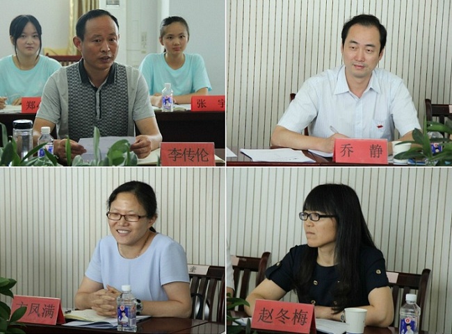 本网讯(国旅学院 吴辉)7月13日上午,校党委常委、副校长毕明福在国旅学院党委副书记乔静、副院长方凤满、赵冬梅等领导的陪同下,来到滁州市定远县连江镇,亲切慰问我校国旅学院赴滁州市“青春扶贫行动”实践团队的全体队员。定远县委常委、副书记李世全、定远中学校长戴茂俊和定远县委委员、连江镇党委书记宋德勇、镇长黄卫红等负责同志热情接待了毕明福一行,并于连江镇政府办公楼三楼会议室举行了安徽师范大学赴滁州市定远县“青春扶贫行动”大学生暑期社会实践慰问座谈会。会议由连江镇人大主席李传伦主持。