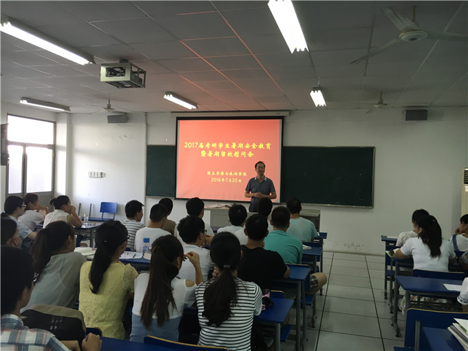 本网讯(国旅学院 陈健)火热七月,骄阳似火。7月25日下午,国旅学院在实验楼202教室召开了暑期留校学生安全教育暨2017届考研学生慰问会。学院党委副书记乔静,2013级辅导员陈健、吴辉,全体留校考研学生参加了会议。
