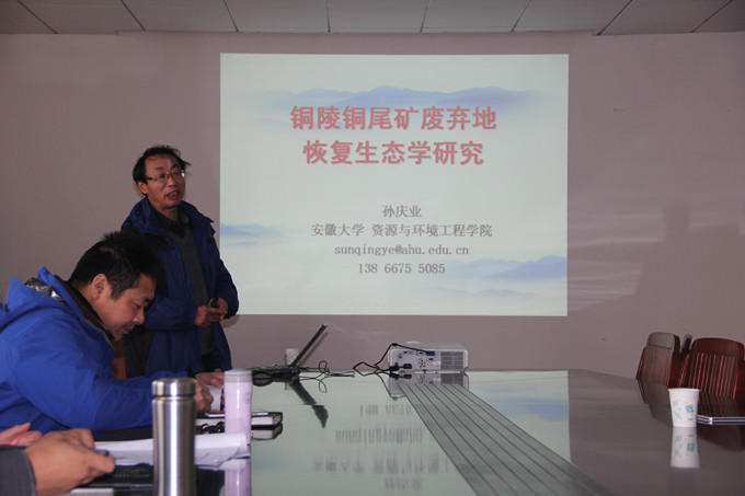 2015年11月26日下午,安徽大学资源与环境工程学院孙庆业教授应邀在必赢三楼会议室作了题为“铜陵尾矿废弃地恢复生态学研究”的学术报告,国旅学院部分教师和相关专业研究生参加了此次报告会。