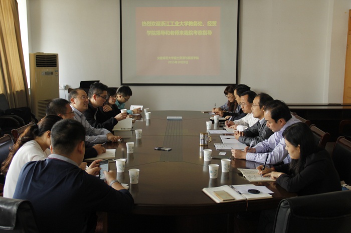 10月9日,浙江工业大学教务处副处长吴向明、经贸管理学院副院长李正卫一行7人来我校就旅游管理专业建设开展调研交流,我校教务处副处长许勇、国土资源与旅游学院副院长卢松、副书记乔静等热情接待了来宾一行,国旅学院教学办、旅游管理专业负责人、实习秘书和辅导员代表与来宾开展了交流活动。