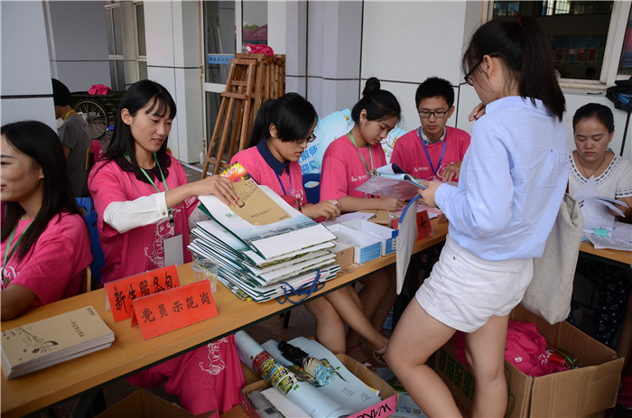 本网讯(国旅学院 陈健)丹桂飘香,师大有你。9月7日是2015级新生报到的日子,为组织好今年的迎新工作,国旅学院认真组织,细致安排,简化迎新报到程序,提前开通了“国旅迎新生QQ交流服务群”,组织了“党员迎新服务示范岗”,设计和派发了“迎新服务大礼包”,举办了“新生家长见面会”,以人性化的服务让2015级新生与大学的“第一次亲密接触”格外温馨难忘。