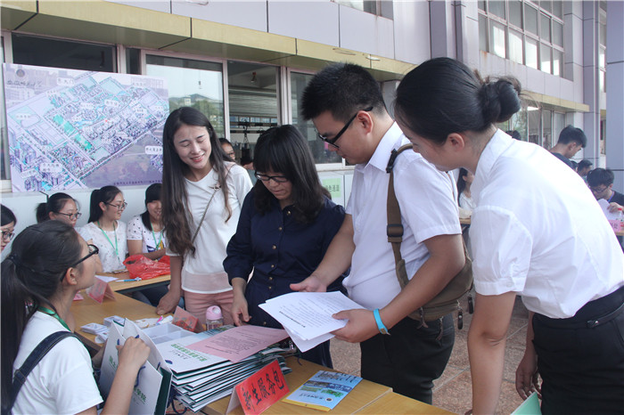 国旅学院在继承往年成功做法的同时,不断创新迎新工作思路和方法。在迎新现场,国旅学院学生党员组成“党员迎新服务示范岗”,充分发挥学生党员的模范带头作用,用心、用情竭诚为广大新生服务。学院特别为新生准备了“迎新服务大礼包”,包含校园地图、新生攻略、专业简介、新生家长会邀请函、防盗防骗安全指南、军训期间活动一览表等材料,为新生了解校园环境、提高安全意识、熟悉新生活动安排提供便利和帮助。2015级旅游管理专业学生郑芮在接受采访时激动地说:“新生服务包很丰富,对于初来乍到的新生来说太管用了,棒棒哒!还要感谢学长学姐的热心接待和服务,谢谢你们。”