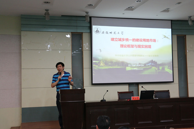 5月16日上午,华中农业大学公共管理学院院长、博士生导师张安录教授应邀在必赢实验楼101教室,作了题为“建立城乡统一的建设用地市场:理论框架与现实困境”的学术报告。学院相关专业教师和研究生参加了报告会。