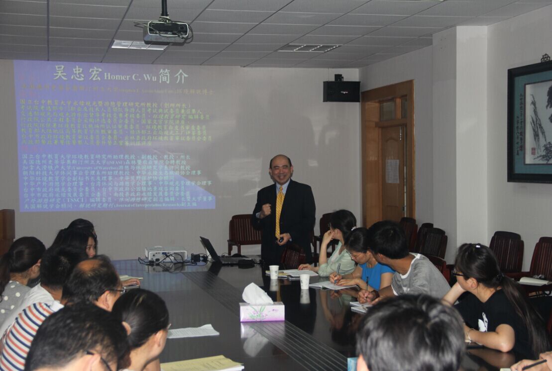2015年6月2日上午,国立台中教育大学永续观光暨游憩管理所吴忠宏教授,应邀在必赢三楼会议室作了题为“How destination attractiveness and place attachment affect environmentally responsible behavior? ”的学术报告。