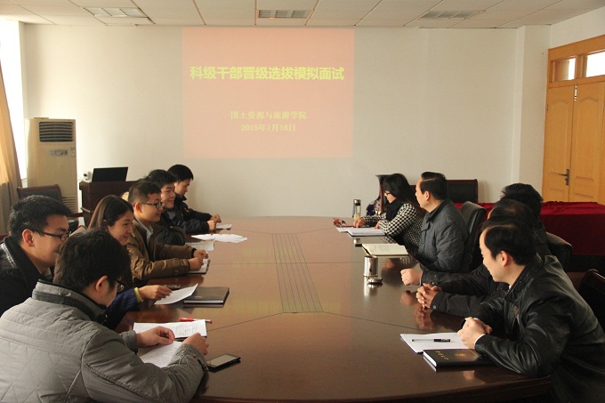 本网讯(图/文 李小文)1月16日上午,学院党委在院四楼会议室组织辅导员模拟述职竞聘。院领导班子成员,各科级干部以及全体专兼职辅导员参加了会议。会议由党委副书记乔静主持。