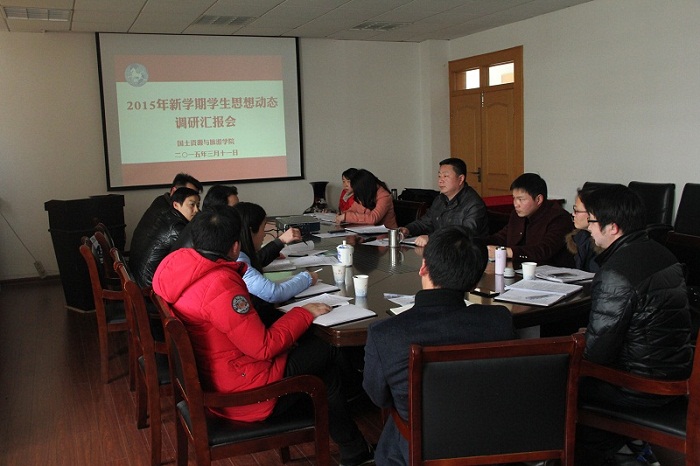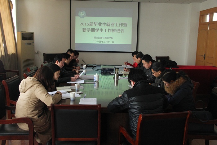 本网讯(国旅学院 李小文)为有效推进应届毕业生的优质就业,掌握在校生的思想动态,谋划新学期的学生工作,3月11日下午,国旅学院组织召开了2015届毕业生就业工作暨新学期学生工作推进会。院党委书记吴春雷、院长焦华富,各专业负责人及教师代表,教学秘书、实习秘书以及全体专兼职辅导员参加,会议由党委副书记乔静主持。