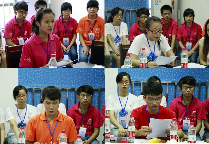 随后,赴弋江区“基层寻梦”骨干挂职实践团队领队崔艳,赴郯庐地区巢湖段“防震减灾”知识宣教及专业调研团队领队孙珏,赴芜湖市“雷锋导游”志愿服务团队领队盛延峰,赴宏村“寻找安徽最美古建筑”专业写生及调研团队领队梁高峰等同学先后向与会的领导、老师和嘉宾汇报了志愿服务团实践工作进展情况。