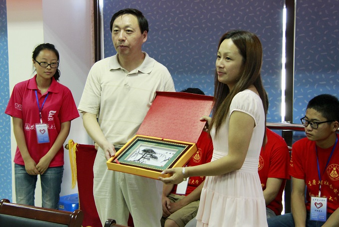 会上,弋江区文明办主任赵慧星向国旅学院暑期社会实践领导组组长、院党委书记吴春雷赠送锦旗表示感谢;院暑期社会实践领导组组长、院长焦华富则代表学院向柏庄社区居委会主任汪燕赠送了铁画纪念品。随后,李琳琦副校长和彭鸿雁局长共同为“安徽师范大学大学生社会实践基地”揭牌。