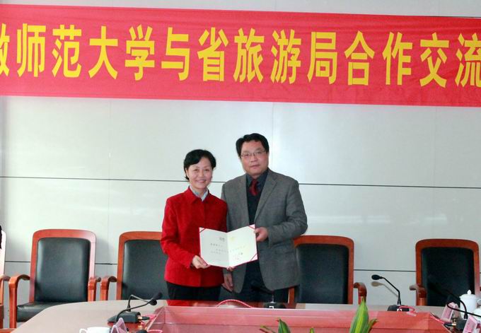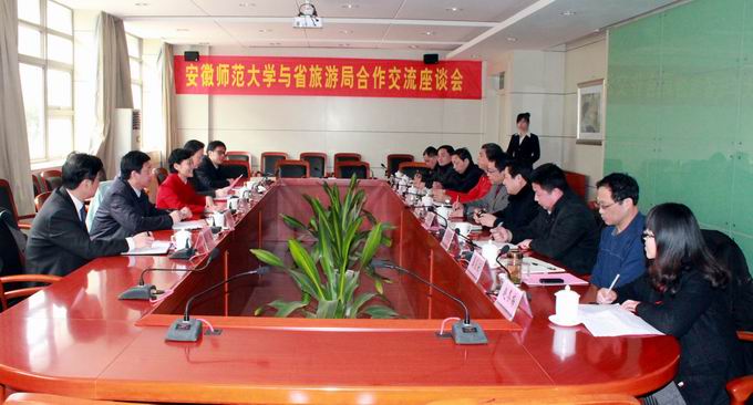 院长焦华富向与会领导重点介绍了我校继去年8月合作联谊座谈会后所做的具体工作和合作进展情况,表示安徽师范大学国旅学院将结合安徽旅游发展的实际,进一步解放思想、改革创新,加强统筹、分类指导,优化结构、提高质量,努力建设成为安徽省乃至中部地区旅游教学、旅游规划、旅游研究、旅游创意和旅游咨询中心。