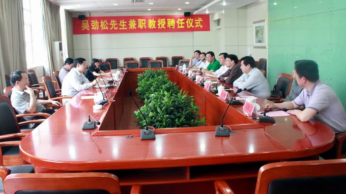 王伦向吴劲松颁发了安徽师范大学兼职教授聘书。
