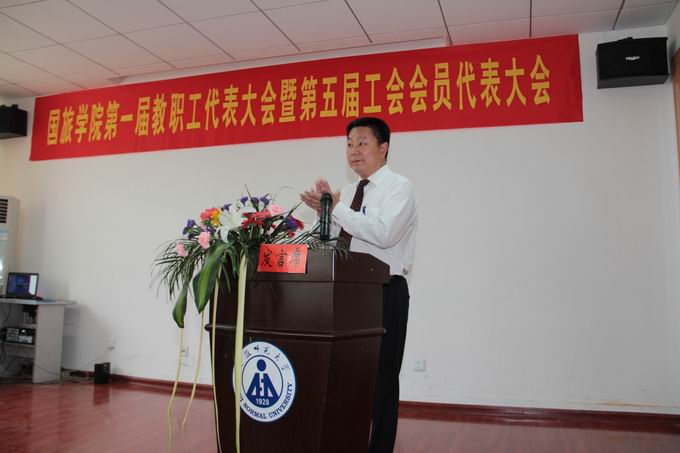 吴春雷首先代表国旅学院致开幕辞。他在开幕词中号召全体代表要树立主人翁意识,以饱满的热情和对学院高度负责的态度,积极为学院的建设发展进言献策。