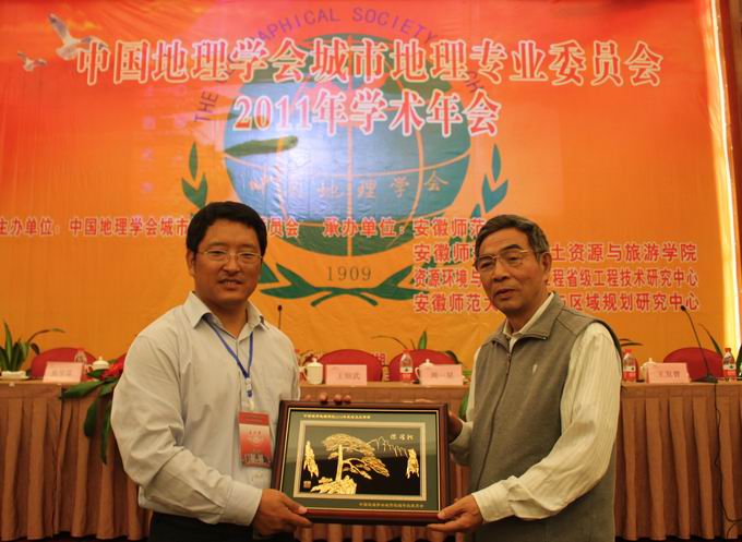 2011年10月9日,中国地理学会城市地理专业委员会2011年学术年会在安徽师范大学隆重召开。此次会议由中国地理学会城市地理专业委员会主办,安徽师范大学、安徽师范大学国土资源与旅游学院、资源环境与地理信息工程省级工程技术研究中心、安徽师范大学城市与区域规划研究中心联合承办。来自清华大学、北京大学、中山大学、南京大学、华东师范大学、河南大学、安徽师范大学等35家高校及科研院所共计150余名代表参加了会议。城市地理专业委员会主任、华东师范大学中国现代城市研究中心宁越敏教授主持开幕式。