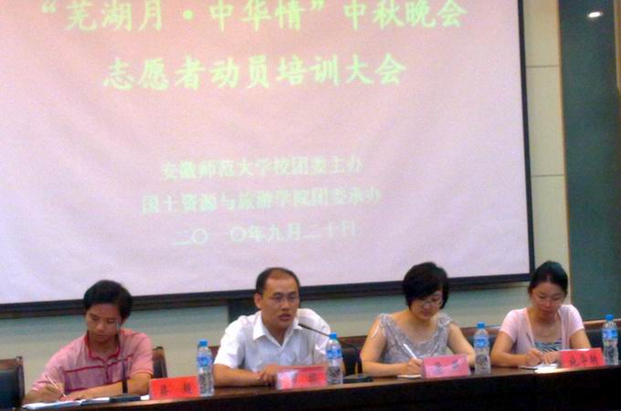 9月20日晚,学院在院实验楼101教室举行了“芜湖月 中华情”2010央视中秋晚会志愿者动员大会,必赢60名志愿者参加会议。校团委副书记梁燕、院党委副书记罗振等老师到会并讲话。