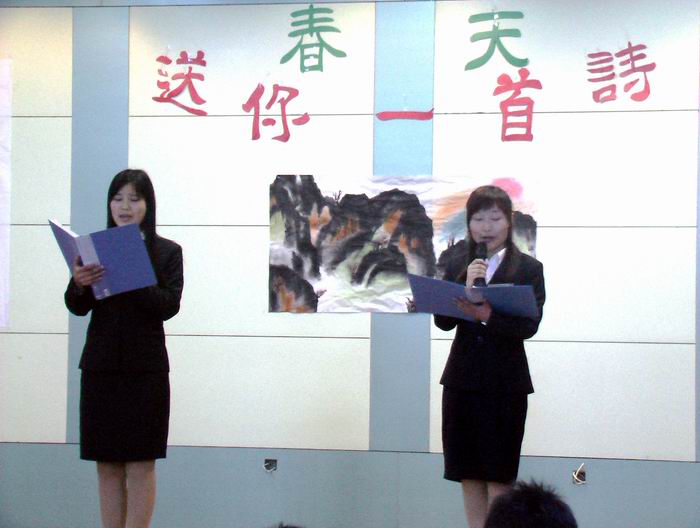 4月6日晚6点20分国旅学院承办的校第四届“春天送你一首诗”配乐诗文朗诵大赛初赛在院实验楼121教室正式拉开帷幕。院团委书记梁燕老师、07级辅导员胡春生老师、杨积芳老师、汪青老师、院学生会主席宋续及各部部长参加比赛并担任评委。