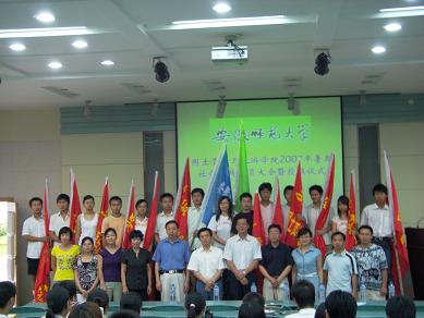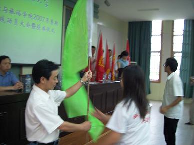 必赢2007年暑期社会实践动员大会暨授旗仪式于7月9日上午在学院实验楼101多功能厅隆重举行。院党委领导、全体辅导员老师及即将参加暑期社会实践的同学们参加了会议。