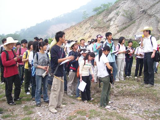 5月1日上午10点,全体师生抵达驻地,5月2日上午即开始了野外实习。全体师生从驻地出发沿指定的路线抵达实习地点。实习目的地是根据“穿越法”——由出露地层从老到新的顺序进行选择。每到一个地点,同学们在老师的指导下认真地记录`、测量、绘图、辨岩性、分岩层、采标本。在野外,天气炎热,植被茂密,山势陡峭,但师生们不畏辛苦、互相帮助克服困难。七天当中,大部分时间在野外,路线遥远就集体带食物在外就餐。休息时间,师生同乐,互相竞歌,其乐融融。5月7日上午,全体师生安全返回学校。