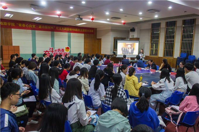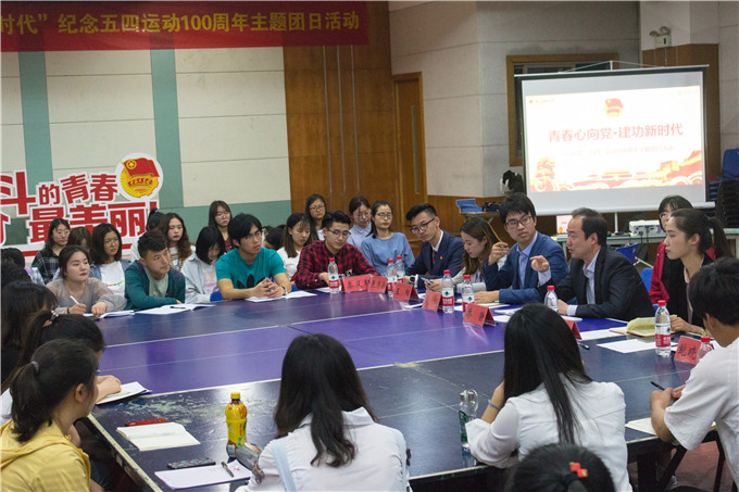 九位师生代表与现场观众共同“分享一些感悟”,交流学习习近平总书记在纪念大会中重要讲话精神的心得和感想。校学生会主席秦义轩从“感动”“触动”“行动”三个方面阐述了自己理解的五四精神。院团委副书记、辅导员陈祥云从三个方面和同学们分享如何在和平年代发扬爱国主义精神,即关注本职角色、关爱身边的人、关心时事政治。师生充分讨论交流,现场气氛积极、热烈。